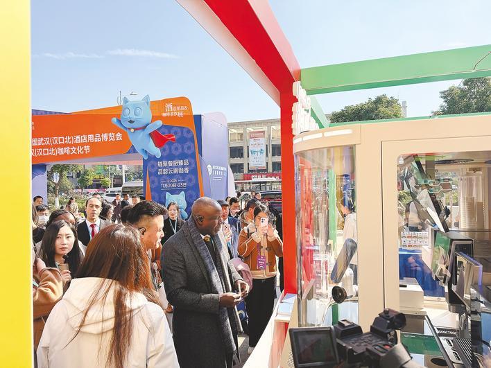 湖北日报讯(记者杨文一、实习生曲宗臣、通讯员黄轩、赵岩)11月20日,2025年武汉小商品博览会(汉口北)(以下简称“汉交会”)在黄陂区开幕。首次亮相汉诺威博览会的“药品与食品同源”展区的金洁成咖啡展位上挤满了市民和游客。这种融合东方健康智慧与西方咖啡的创新饮品,吸引了年轻消费者和众多国际买家的关注。