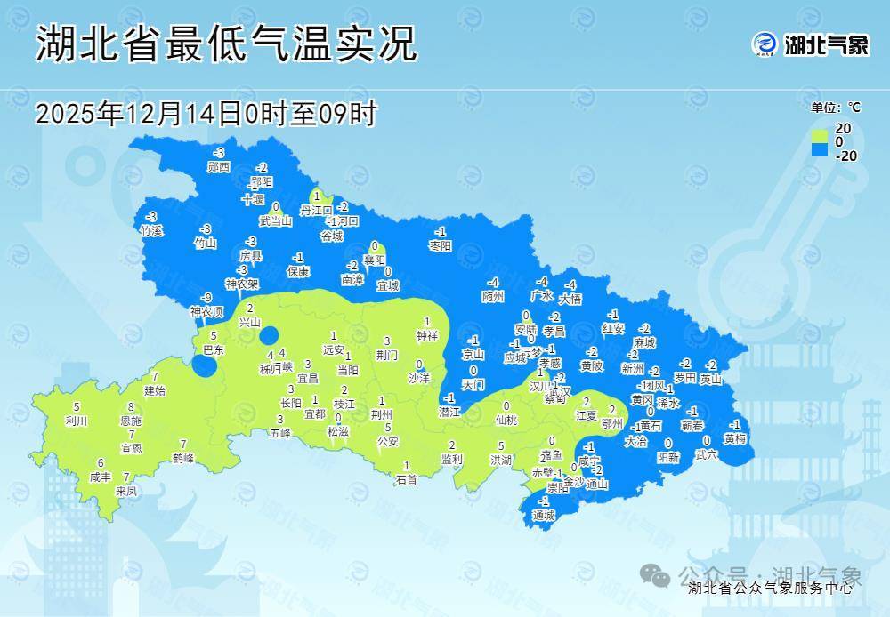 湖北日报讯(记者王京华)12月13日,随着冷空气继续南下,全省大部地区由阴转晴,但风力依然强劲。 14日上午,我省北部和东部地区最低气温为零下,武汉仅为-2.1摄氏度。最新天气数据分析显示,预计下周该州天气以晴到多云为主,气温逐渐上升。 16日,日本东部部分地区最高气温可能再次突破20℃。湖北省最低气温实时地图(12月14日00:00至09:00)。从上午 8:00 开始12 月 14 日至上午 8:00 12月15日起,全州将迎来阳光明媚的天气。最高气温11~15℃,最低气温北部-4~-1℃,南部-1~3℃。南风强度2-3级。从早上 8 点开始12 月 15 日至上午 8 点12月16日,全州天气晴朗到多云。最高气温13-18℃,最低气温北部0-3℃,南部3-6℃。南风,2 至 3 级。上午 8:00 多云转晴。 12 月 16 日至上午 8:00 12月17日,中西部地区最高气温在15℃至19℃之间,东部地区最高气温在19℃至22℃之间。最低气温北部0~3℃,南部3~7℃。预计偏北风将达到2至3级,夜间将增强至3级,阵风4至6级。预报员警告,近期部分地区可能出现晨雾。公众应关注当地的警报和预报信息。浓雾行驶时,应及时打开雾灯和双闪灯,降低车速,控制跟车距离,必要时停在路边,等待以便雾气在上路之前消失。